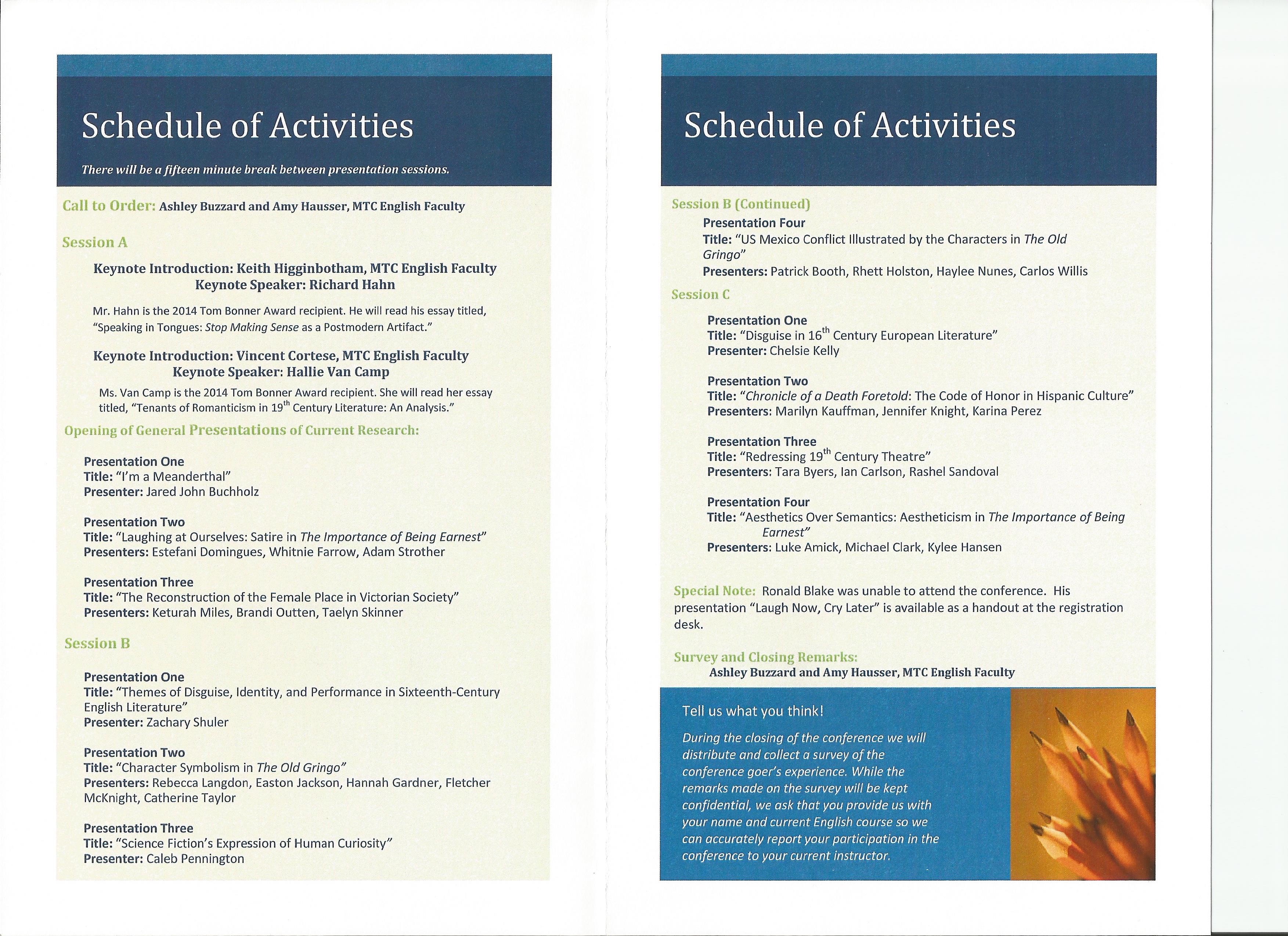 The First Annual MTC Student English Conference Participants